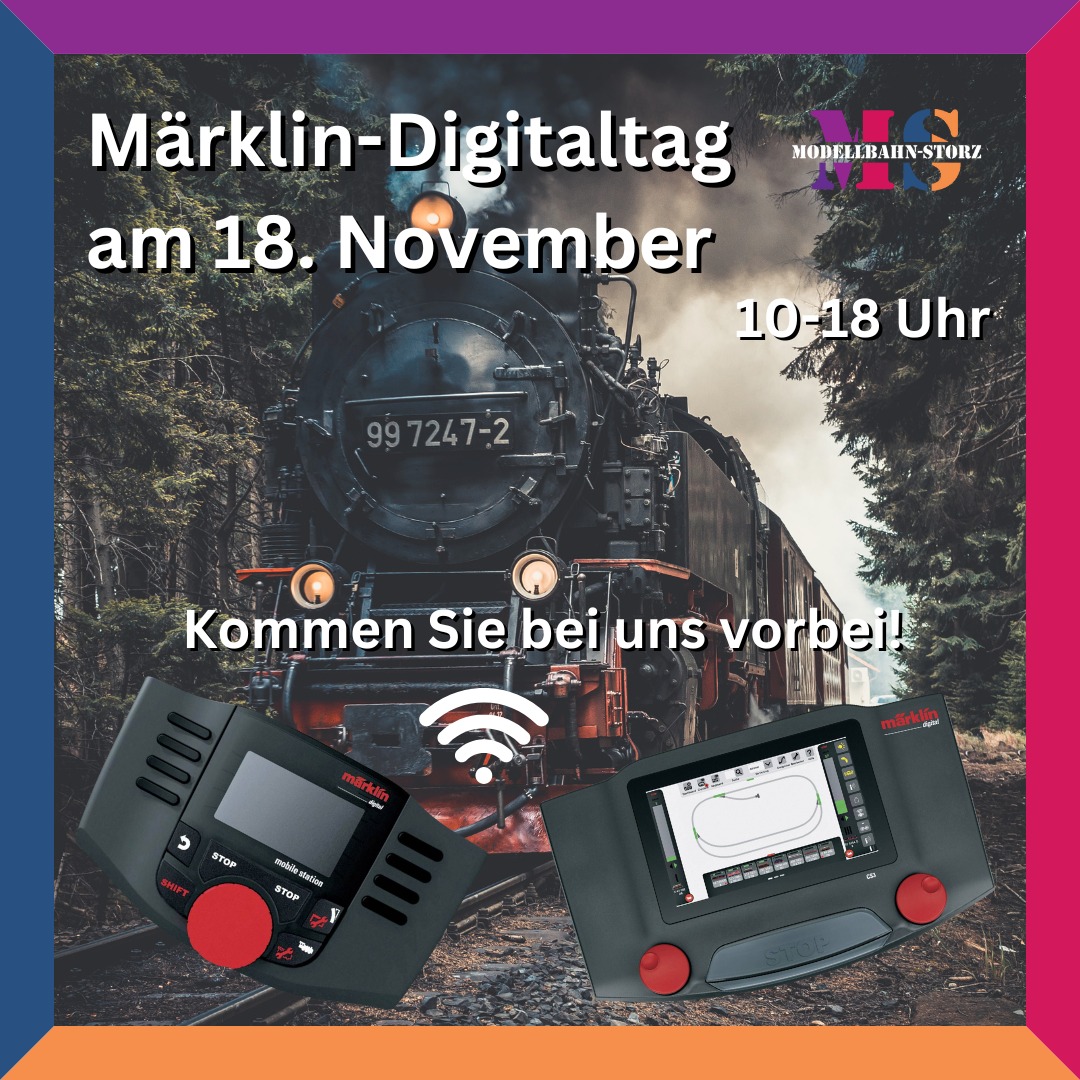 Am Märklin-Digitaltag haben Sie die Gelegenheit, bei Modellbahn-Storz die digitale Mehrzugsteuerung in Aktion zu erleben, selbst auszuprobieren und mit Fachleuten ins Gespräch zu kommen.