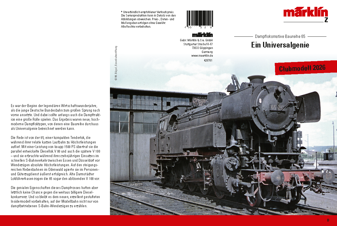 Die Clubmodelle 2026 von Märklin, Minitrix und LGB umfassen einen offenen LGB-Aussichtswagen der SOEG in Epoche VI mit detaillierter Inneneinrichtung, Figuren und Metallradsätzen. Märklin präsentiert eine komplett neu konstruierte BR 65 der DB in Epoche IIIb mit Metallkessel, funktionsfähiger Steuerung, voll angetriebenen Achsen und beleuchtetem Führerstand. Minitrix ergänzt die Auswahl mit der Schnellzuglok BR 03 001 im Zustand um 1999, ausgestattet mit Metalldruckguss, mfx/DCC-Decoder, Sound, Feuerbüchsenflackern und umfangreicher LED-Beleuchtung. Mehr Informationen