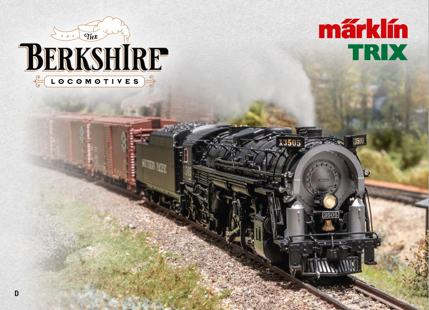 Die Dampflokomotive mit der Achsfolge 2-8-4 „Berkshire“ der Southern Pacific trägt die Betriebsnummer 3505 und zeigt den Betriebszustand zwischen 1945 und 1950. Sie gehört zu den 25 gebauten Lokomotiven mit dem markanten Coffin-Vorwärmer und ist in tiefschwarzer Farbgebung ausgeführt. Das Modell besitzt einen Spielewelt-Decoder mit Licht- und Soundfunktionen, eine digital schaltbare Führerstandsbeleuchtung sowie einen serienmäßigen Raucheinsatz und wird mit Güterwagensets angeboten. Mehr Informationen